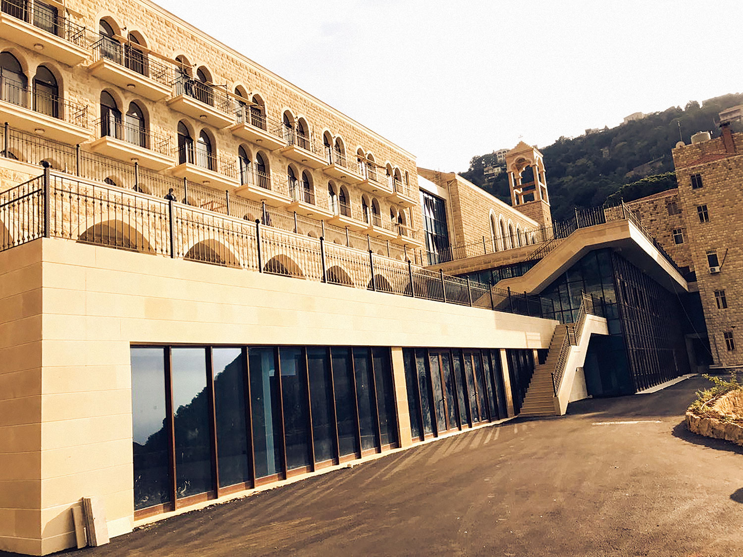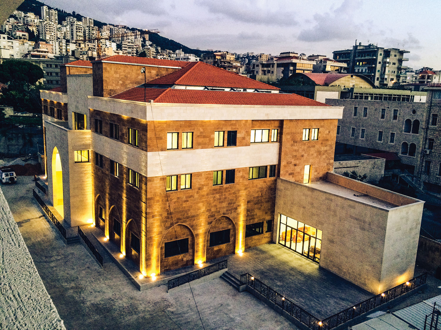 The hospital incorporates a one-day clinic, external clinics and patient rooms, laboratories and operation rooms. The radio/TV station construction consists of a basement, three floors, building entrances and internal roads. The total built-up area is 17,200 square meters.