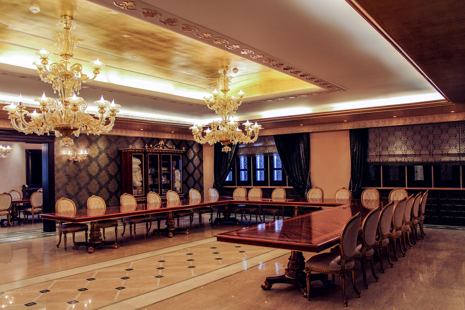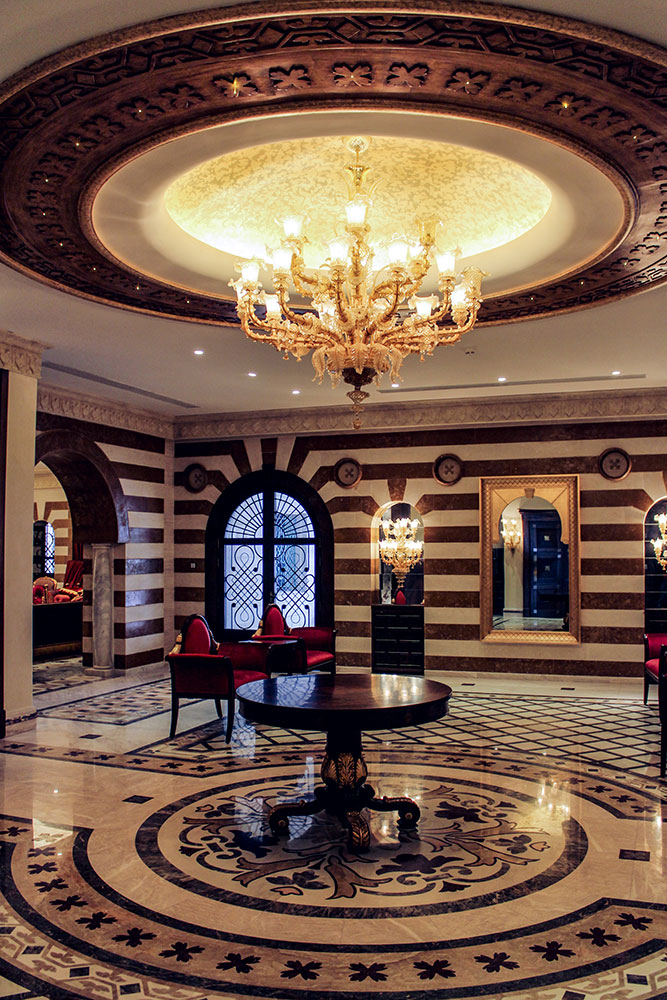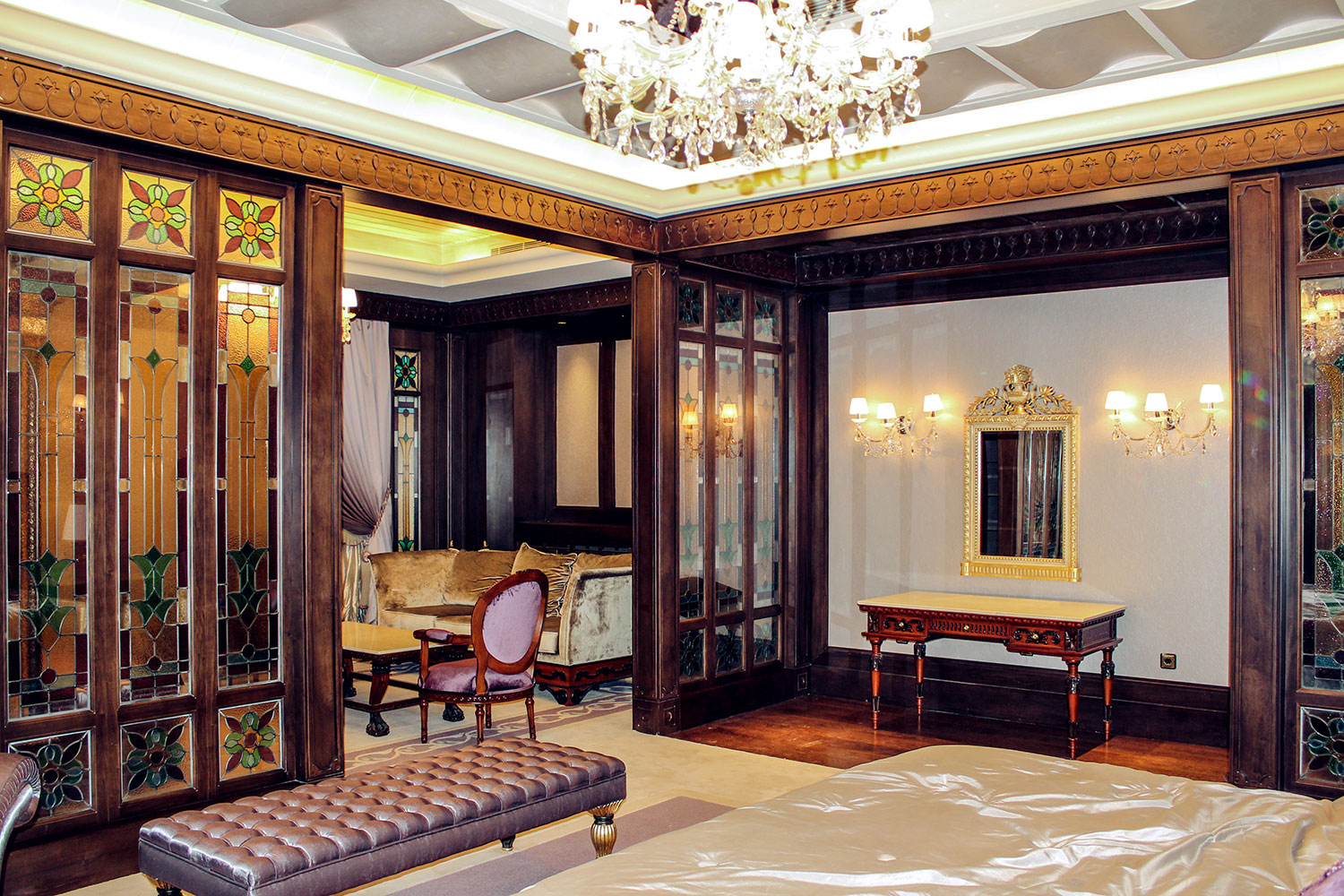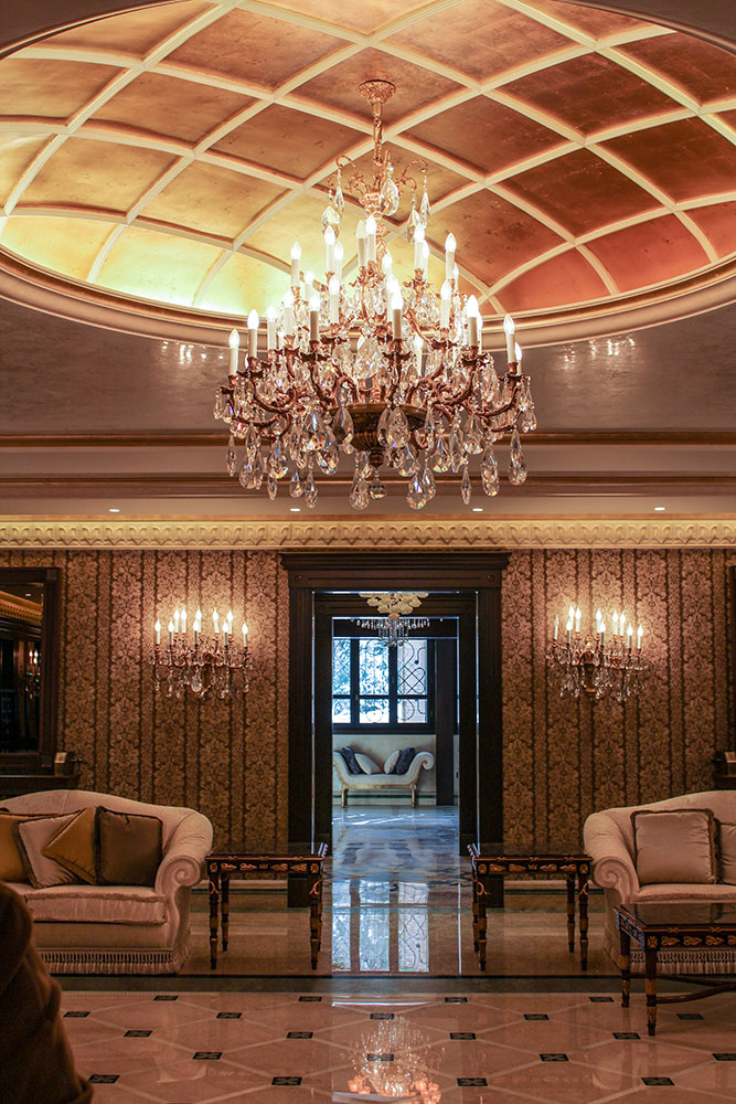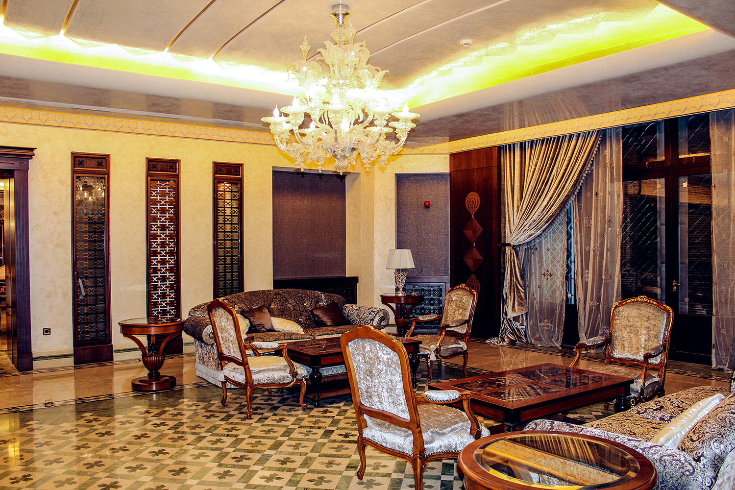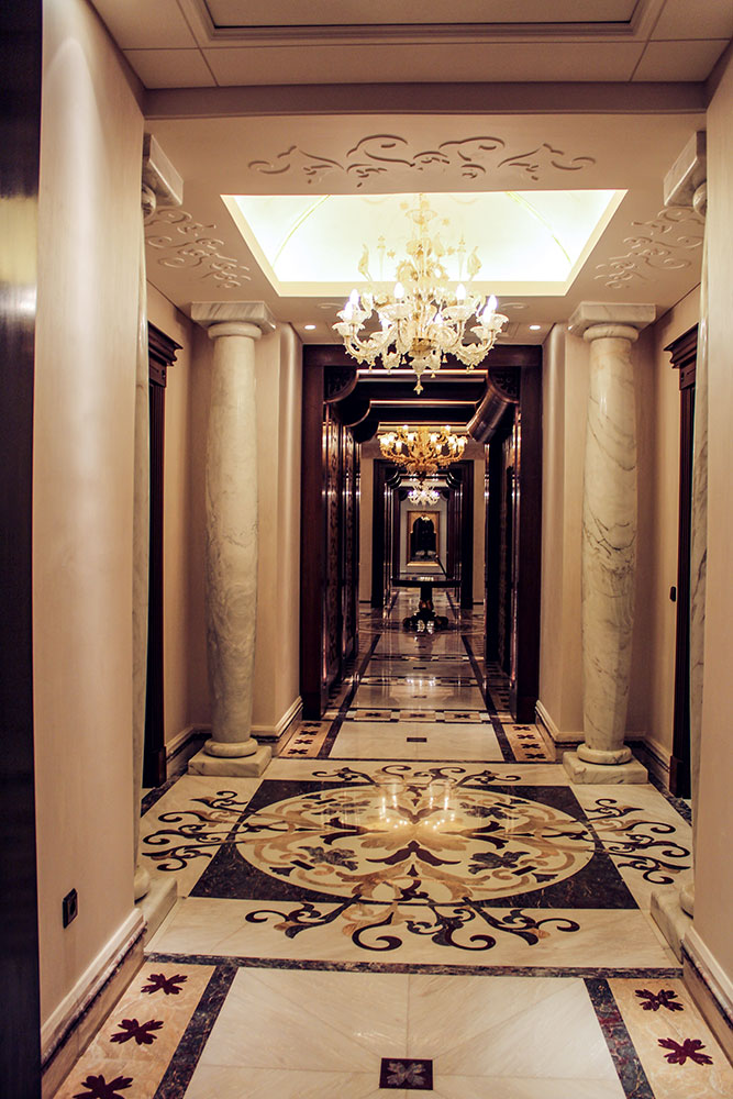 Rayyan Palace covers approximately 3,000 square meters of built-up area, split equally into three stories. The spacious ground floor is designed to receive guests on formal occasions. The middle floor is a family reception with living space and two guest rooms. On the upper floor is a private zone for ‘Her & His Highness’ bedrooms and other services, annexes and assistants’ rooms. There are also two private bedrooms for close family members and special guests.